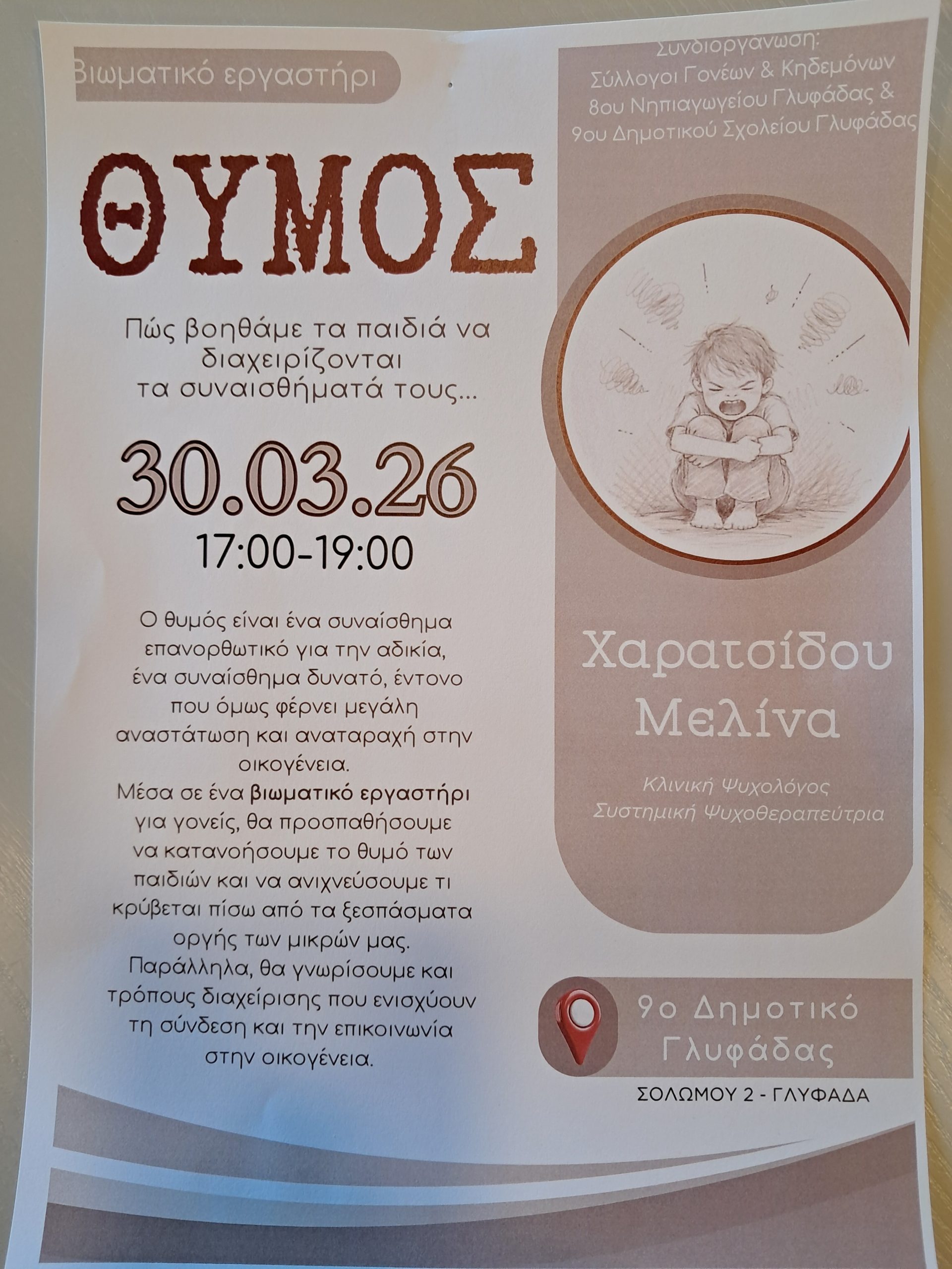 Βιωματικό Εργαστήρι γονέων με θέμα: “Θυμός”